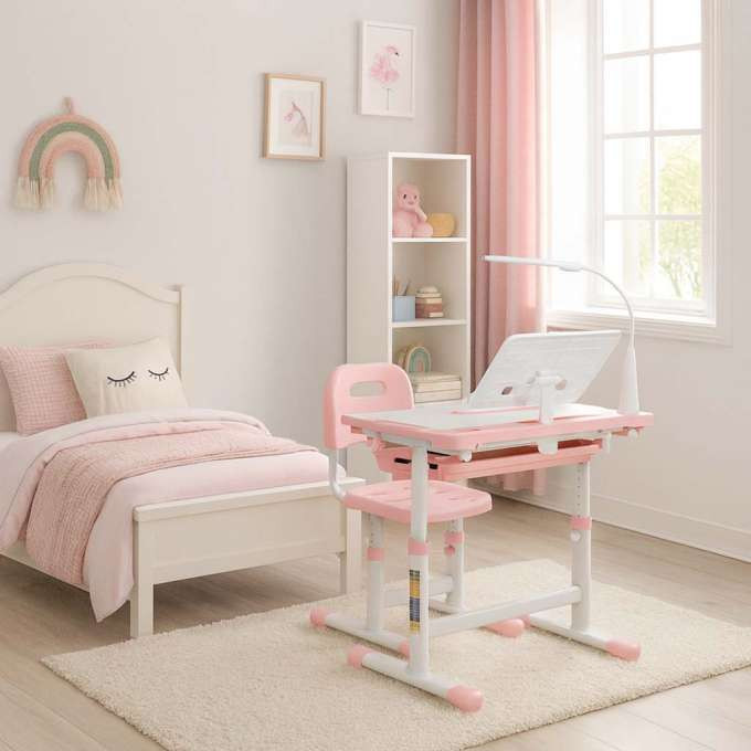 Egy megfelelően megtervezett , optimális felszereltséggel rendelkező íróasztal már kiskorától kezdve kényelmes munkát biztosít, pozitívan befolyásolva a gyermek tanulási hatékonyságát. Egy ergonomikus gyerekasztal állítható székkel lehetővé teszi a gyermek számára, hogy megnyugodjon és a feladatára koncentráljon. Az íróasztalnál házi feladatot írhat , könyvet olvashat vagy tankönyvet használhat. Az íróasztal alkalmas kreatív munkára is , például rajzolásra , festésre vagy kalligráfiára . Az asztal megfelelő magassága kulcsfontosságú a munkahelyi egészség és higiénia szempontjából. Az állítható, LED-es világítással ellátott íróasztal segít fenntartani a helyes testtartást ülés közben, és egészséges, gerinckímélő szokásokat alakít ki . Az asztallap a megfelelő magasságra állítható, így a gyermek könnyen elérheti a könyveket és az evőeszközöket .