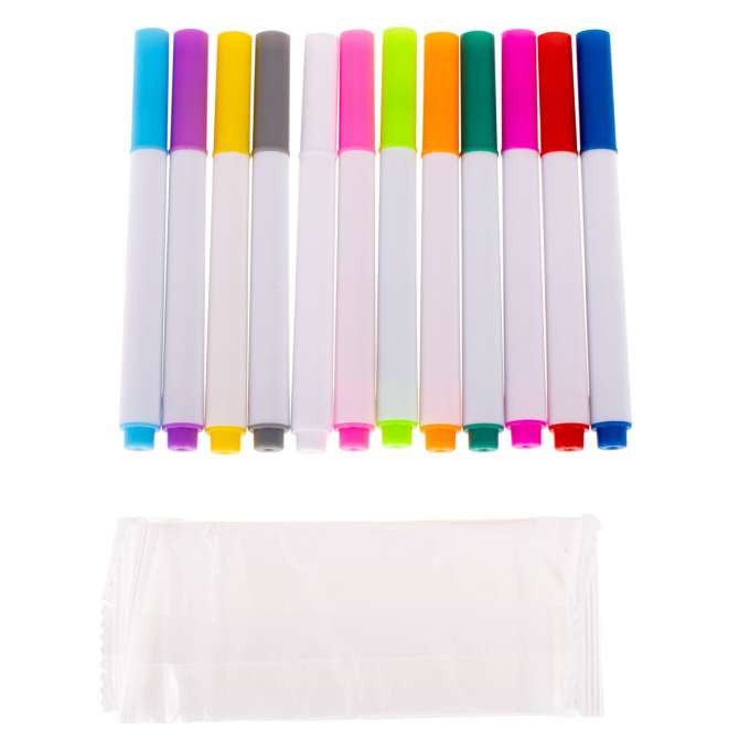 A készlet 12 db kréta jelölőt tartalmaz, melyek nedves ruhával lemoshatók.